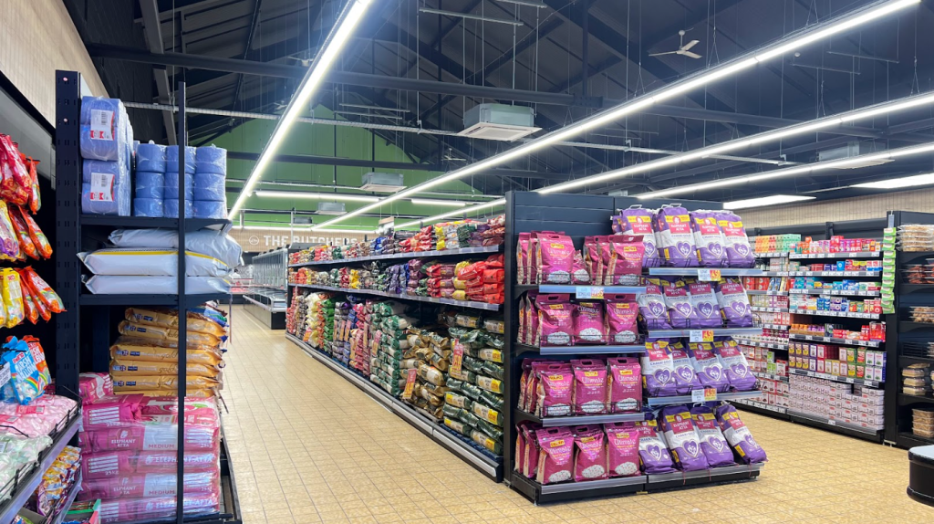 Comprehensive selection of canned goods, snacks, and packaged food products